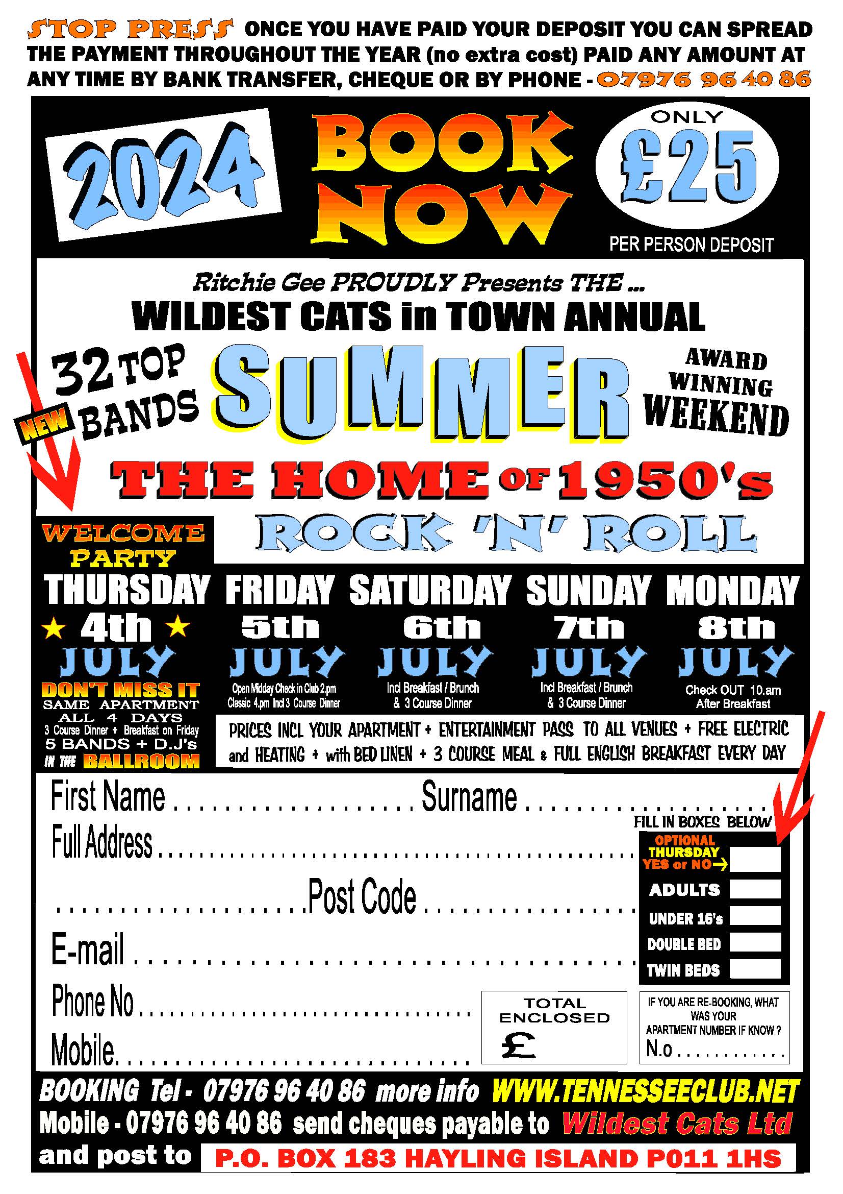 For reservations just send the full balance with your booking form or a deposit of £25 per person