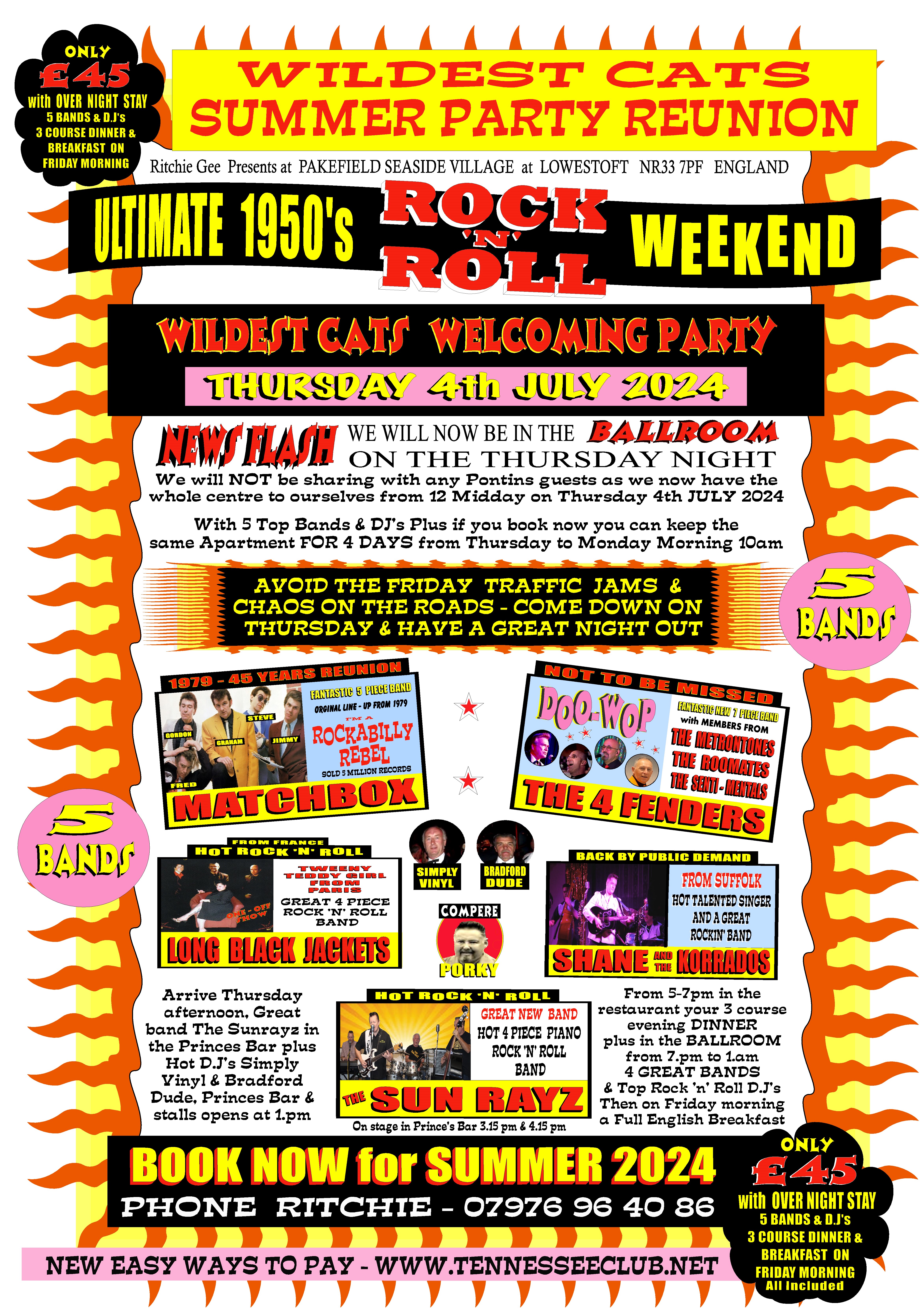 If for any reason an artist or band cannot appear, we cannot be held responsible. All of our artists have been booked in good-faith some over a year ago, it will normally be because of ill-health or an accident, and we will adjust the entertainment program accordingly.